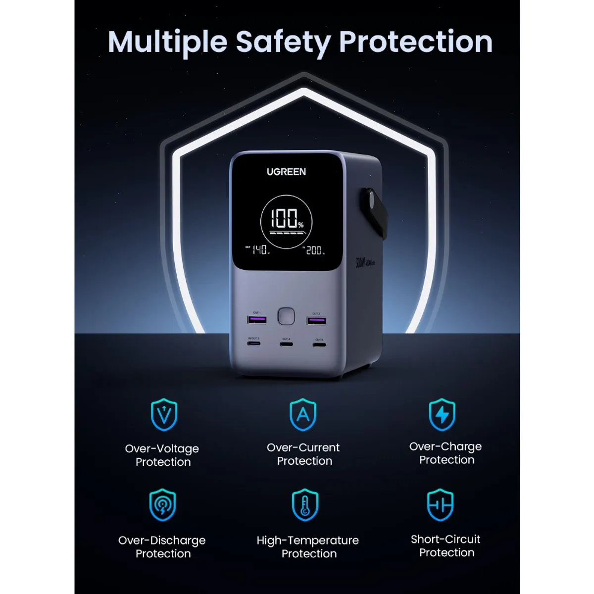 ¡La potencia definitiva para tus dispositivos en cualquier lugar! La Ultra Batería Portátil UGREEN de 48,000mAh redefine la capacidad y velocidad de carga con una impresionante salida máxima de 300W. Diseñada para profesionales y aventureros, cuenta con 4 puertos USB-C y 2 USB-A para alimentar laptops, tablets, teléfonos y más, todo al mismo tiempo. Su tiempo de recarga de solo 2 horas te mantiene siempre en movimiento. Con una pantalla digital intuitiva y múltiples sistemas de protección, la PB720 es sinónimo de potencia confiable y portátil. ¡Carga sin límites!